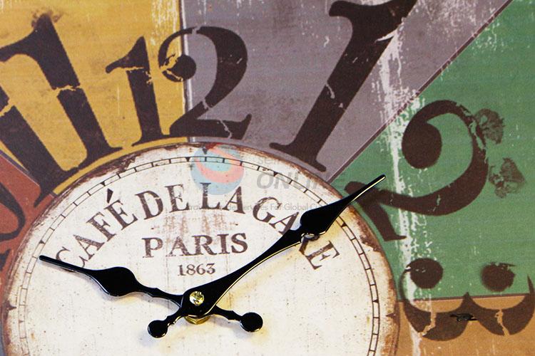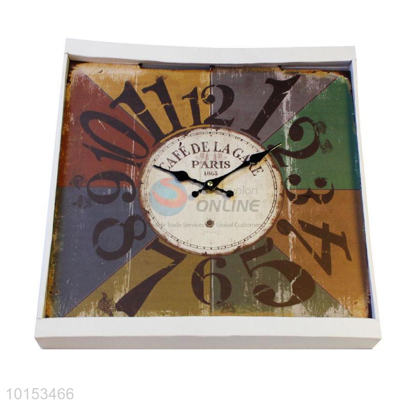 Square Shaped Wall Clock Colorful Numbers Pattern Creative Wooden Round Clock
