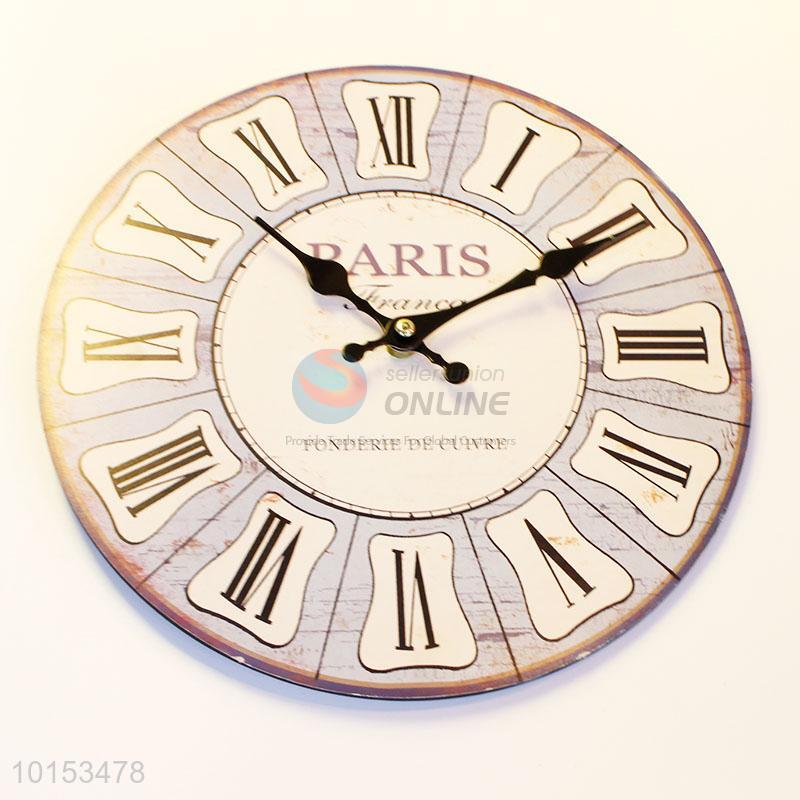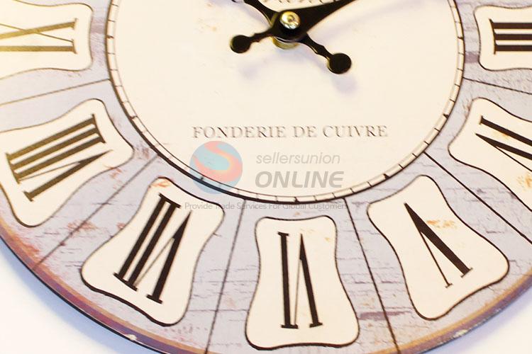 European Style Round Shaped Wall Clocks Artistic Roman Numerals Wooden Clock