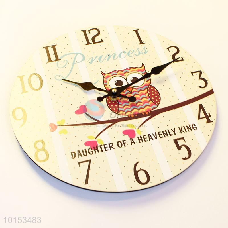 Round Shaped Cartoon Owl Pattern Wall Clock Board Clock for Home Decoration