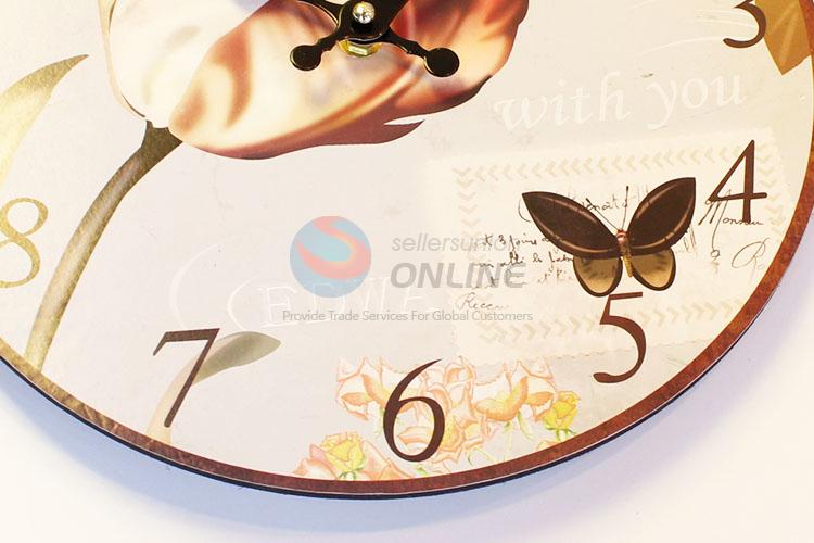 Round Shaped Flower Pattern Wall Clock Board Clock for Home Decoration