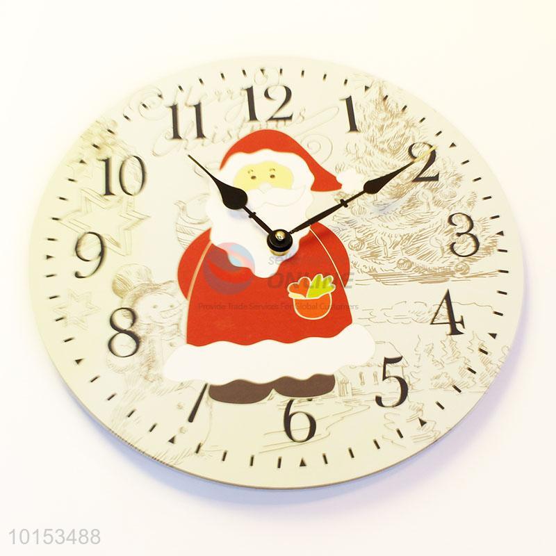 Round Shaped Santa Claus Pattern Wall Clock Board Clock for Living Room Decoration