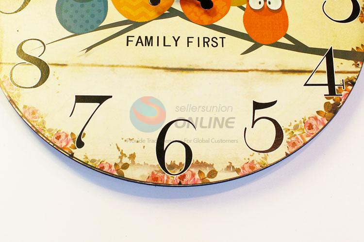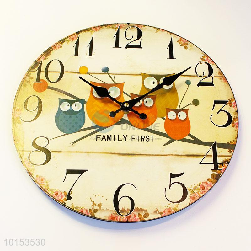 European Style Round Shaped Wall Clocks Owls Family Pattern Wooden Clock