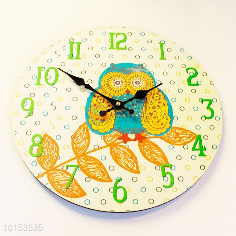 Round Shaped Colorful Cartoon Owl Pattern Wall Clock Board Clock for Home Decoration