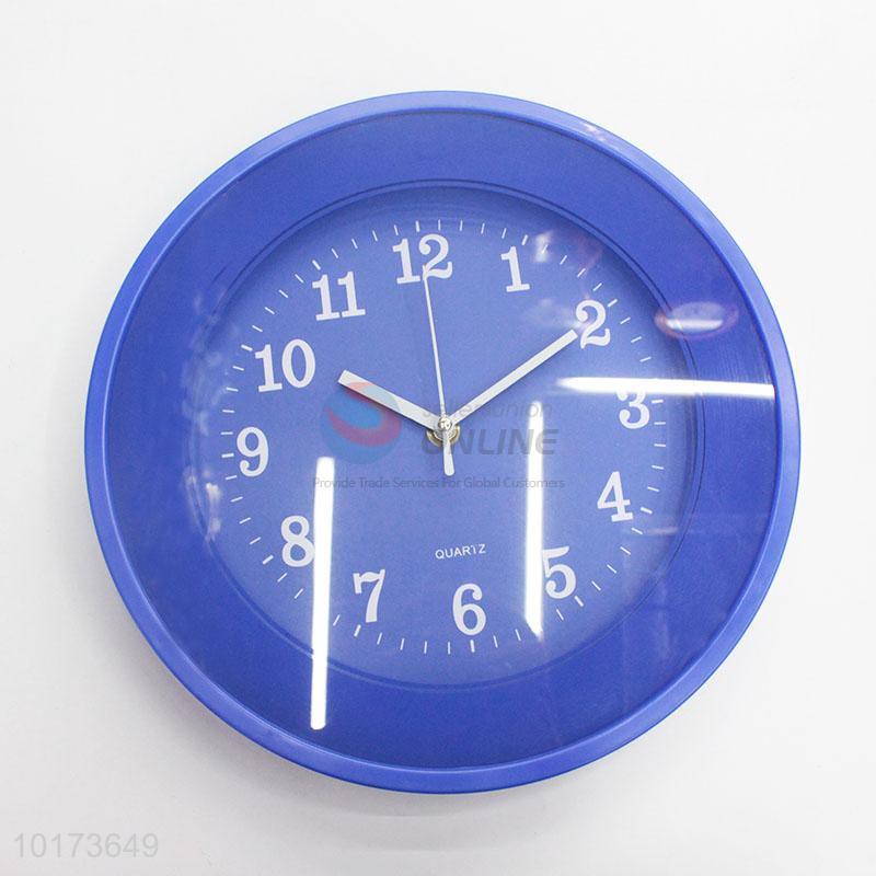 Personalized Fashion Blue Round Shaped Glass&Plastic Wall Clock for Decoration