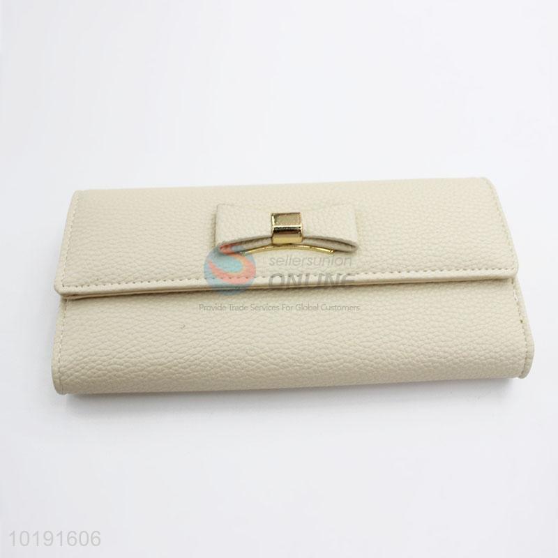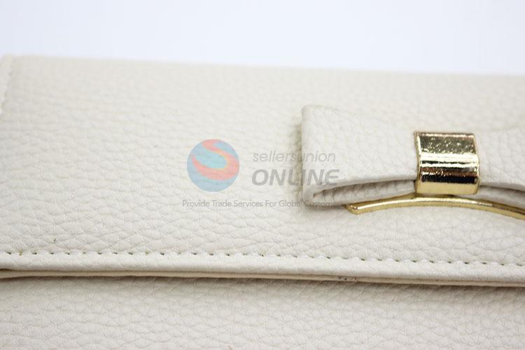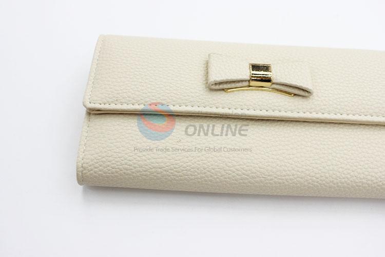 Simple Design Women Fashion Bowknot White PVC Leather Long Wallet