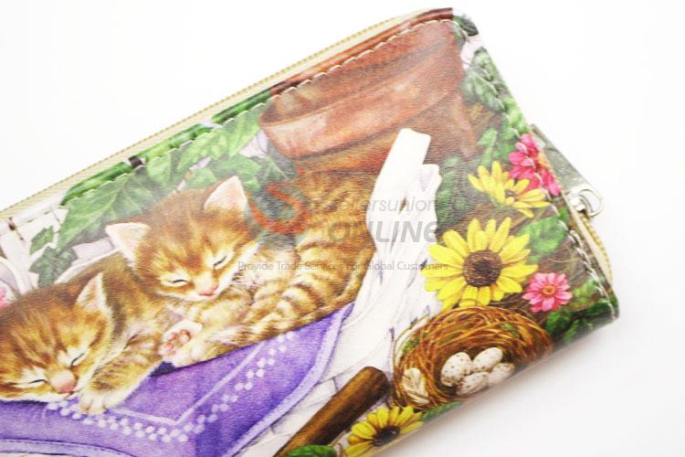 Cute Cat Printed PVC Purse&Wallet with Copper Zipper for Sale