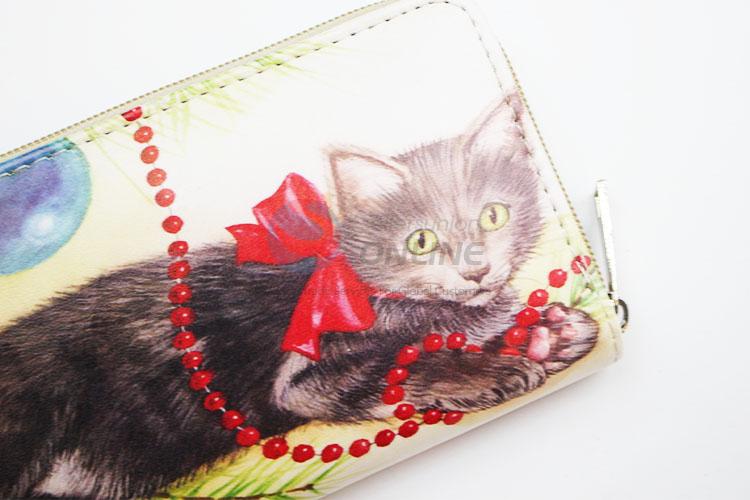 Black Cat Printed PVC Purse&Wallet with Copper Zipper for Sale