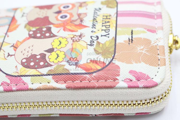 Promotional Lady Purses Long Wallet with Owl Pattern