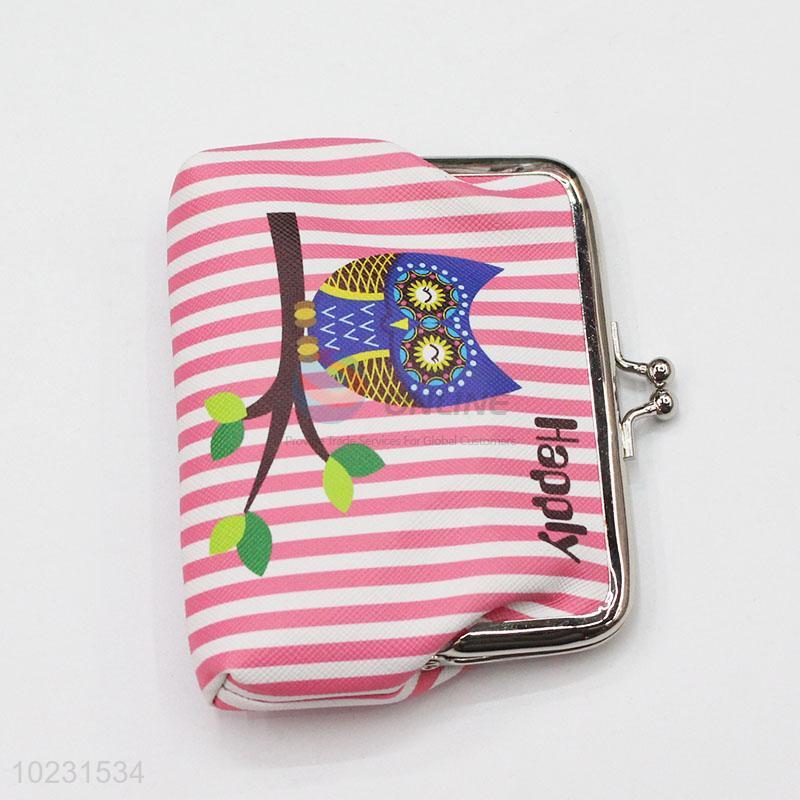 Pink Striped Pattern PVC Coin Purse Wallet