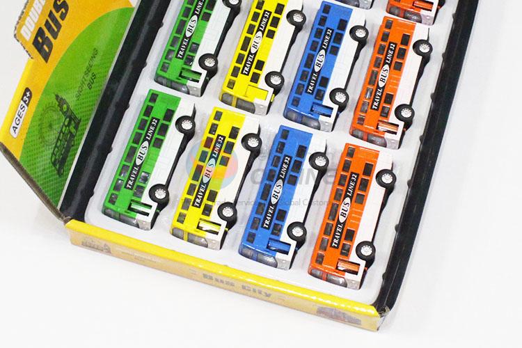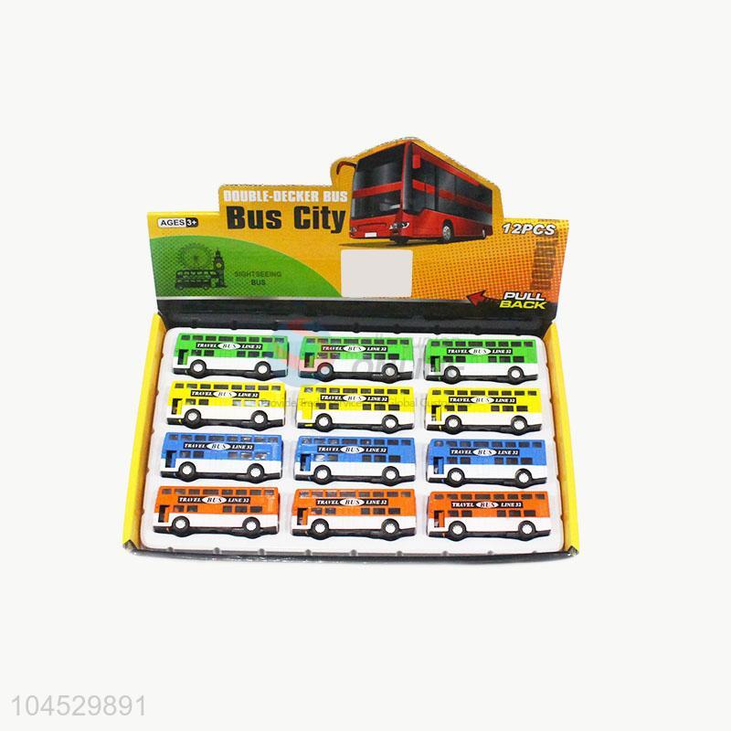 Popular 12pcs alloy double-deck bus toy
