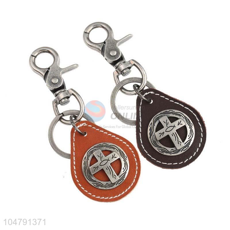 Best selling cowhide key chain cross key ring
