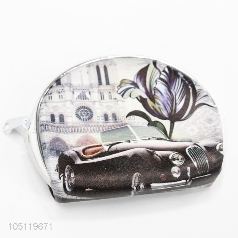 Pretty Vintage Car And Flower Printed Coin Purse Zipper Pouch
