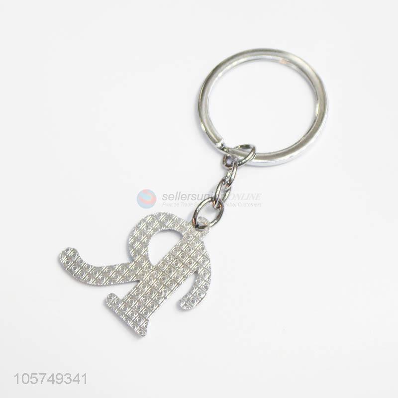 Factory customized letter R shape zinc alloy keyrings metal key chain