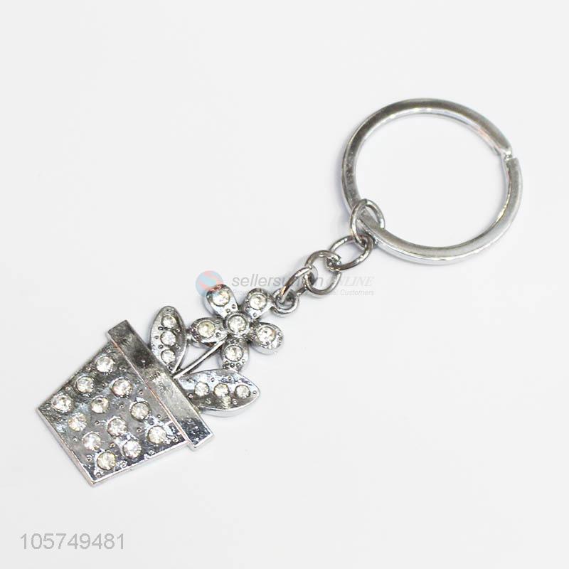 China manufacturer flowerpot shape zinc alloy keyrings metal key chain