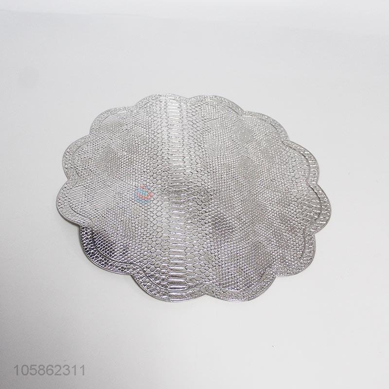 High sales flower shape silver color pvc placemat