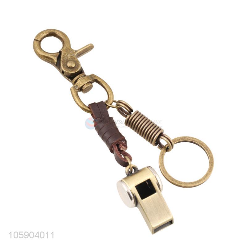 Good quality retro alloy whistle pendant weaving leather key chain