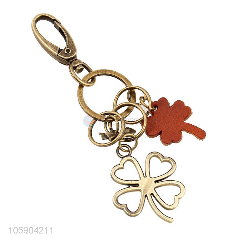 Latest design retro alloy four-leaf clover pendant leather key chain