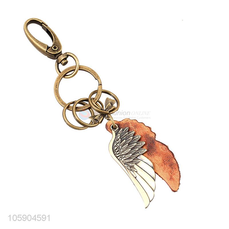 Best selling wing alloy pendant key chain leather key ring
