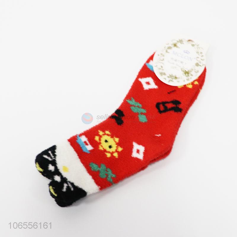 Factory sell cute cartoon super soft warm plush fuzzy socks