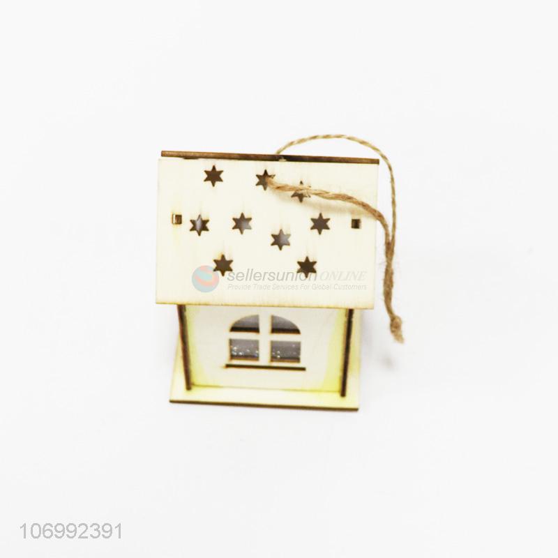 Reasonable price Christmas ornaments hanging led light up wooden house lamp