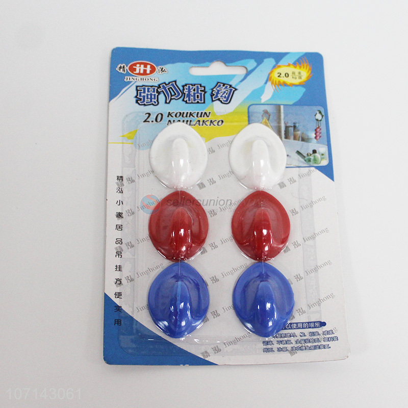 Low price household supplies colorful plastic sticky hooks adhesive hooks
