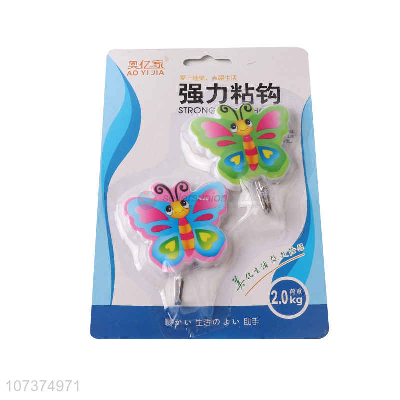 Factory price butterfly wall hooks plastic sticky hooks cartoon clothes hooks