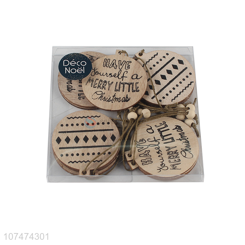 High quality Christmas hanging decoration round printed wooden ornaments