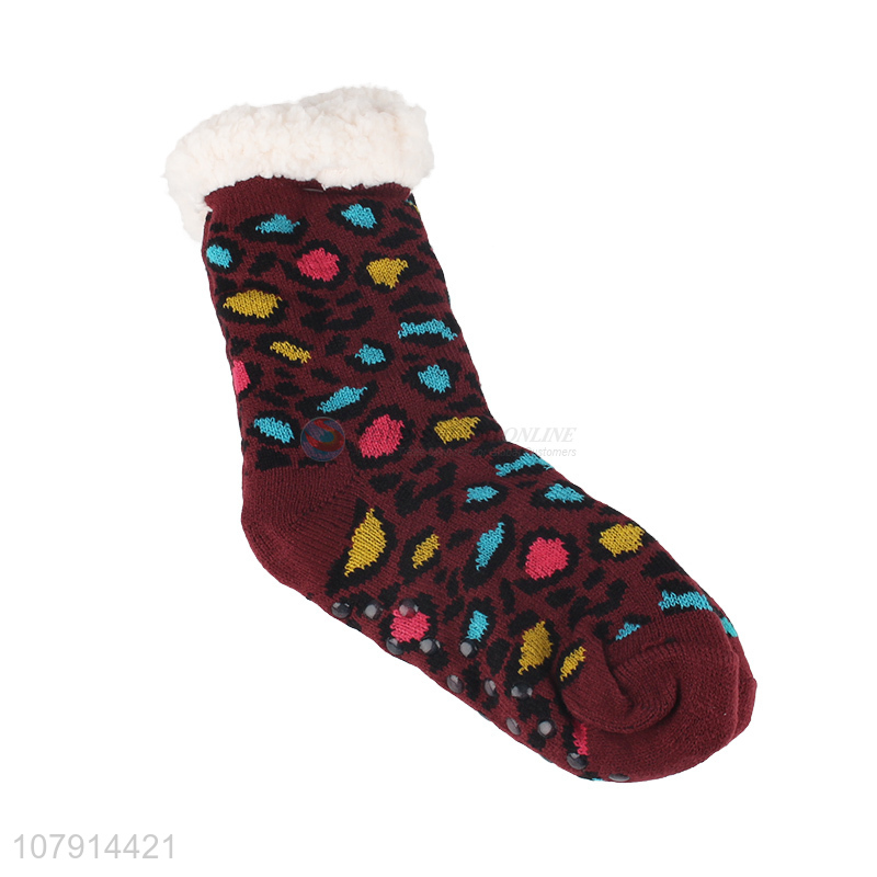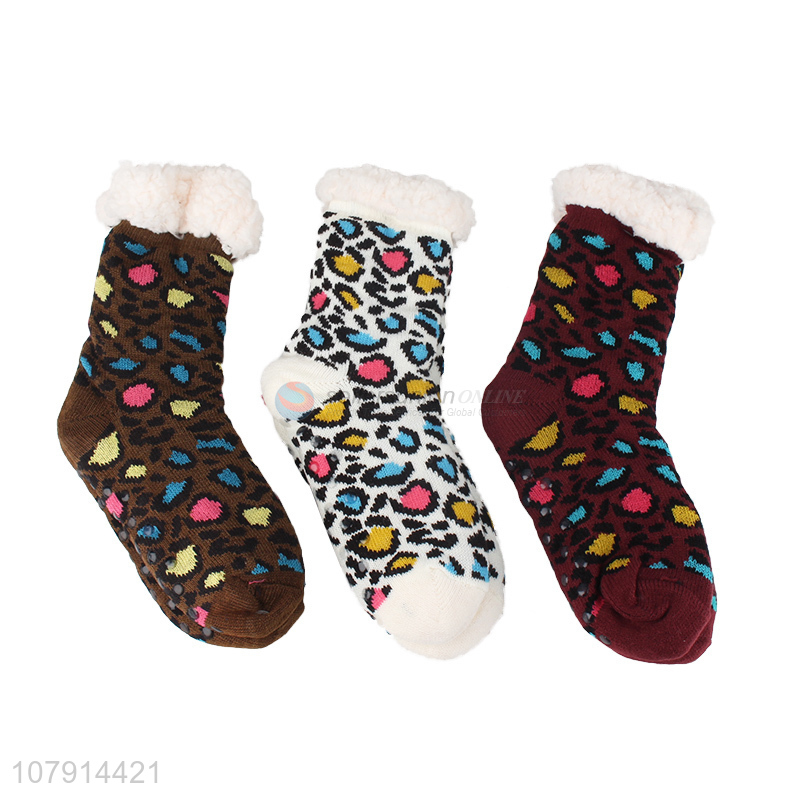China manufacturer stylish leopard room socks anti-slip women winter floor socks