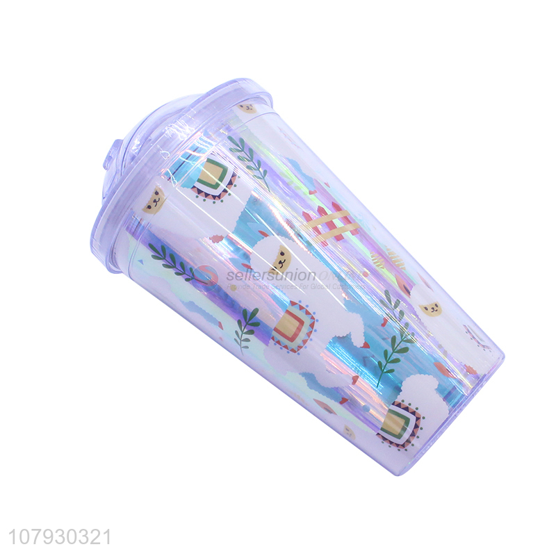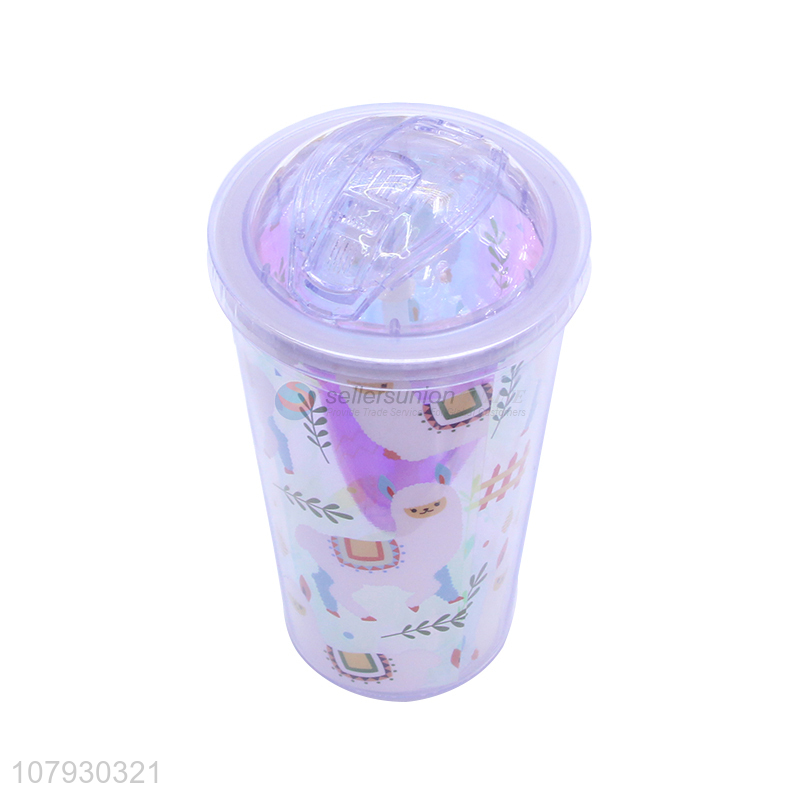 New product pressing type cartoon animal tumbler water cup with straw