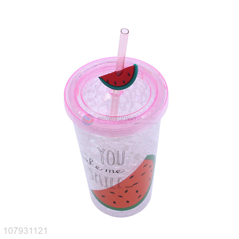 Popular product double walls platsic juice mug ice gel cooling cup with straw