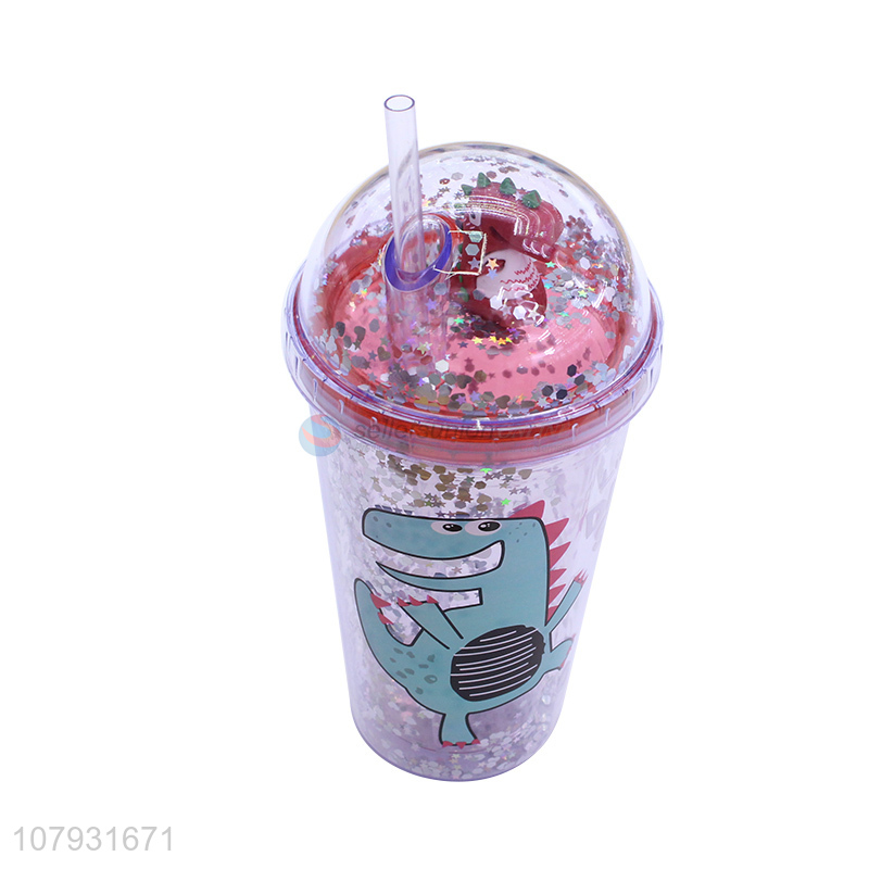 Wholesale cartoon dinosaur pattern plastic juice water coffee cup with straw