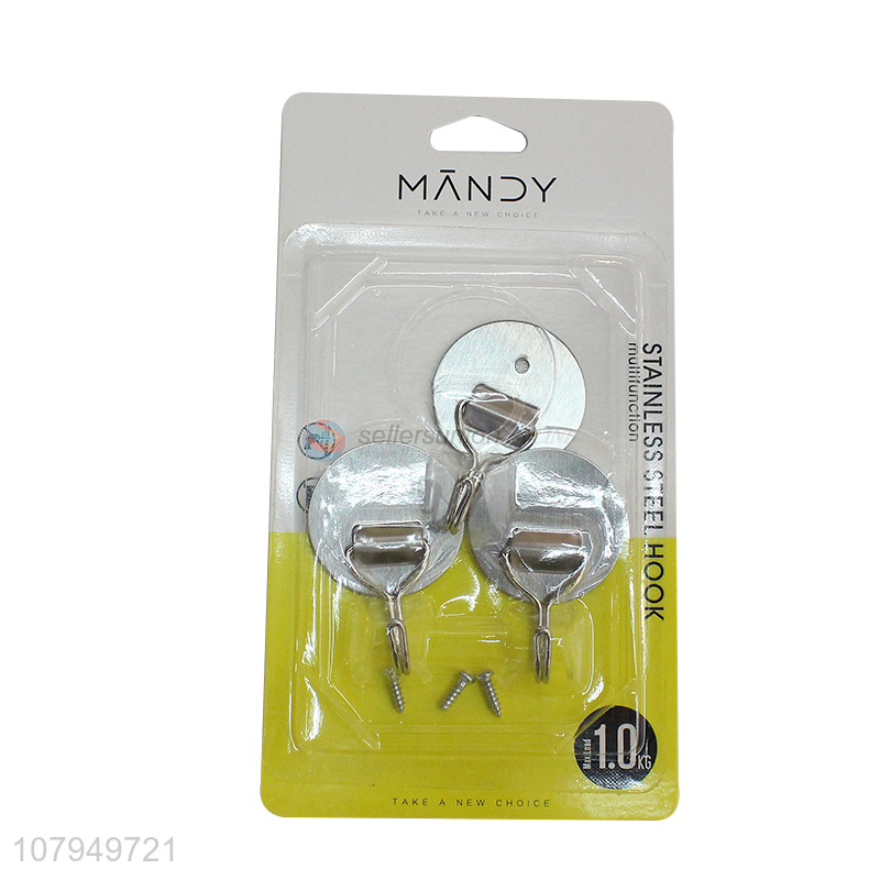 Factory direct sale silver round stainless steel small sticky hook 3pcs