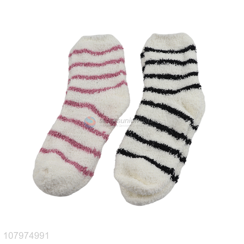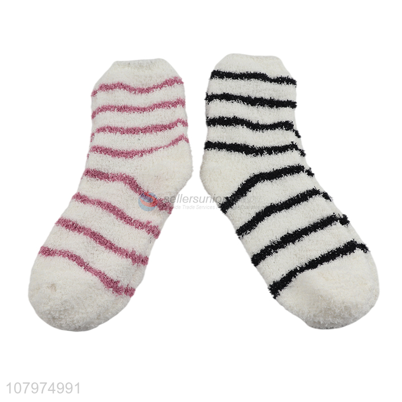 Hot sale fashion women winter socks striped microfiber crew socks