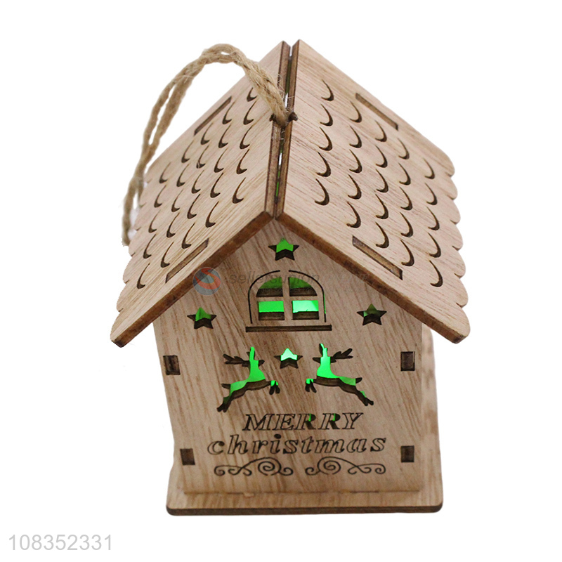 Delicate Design Christmas Wooden Hanging Ornament With Light
