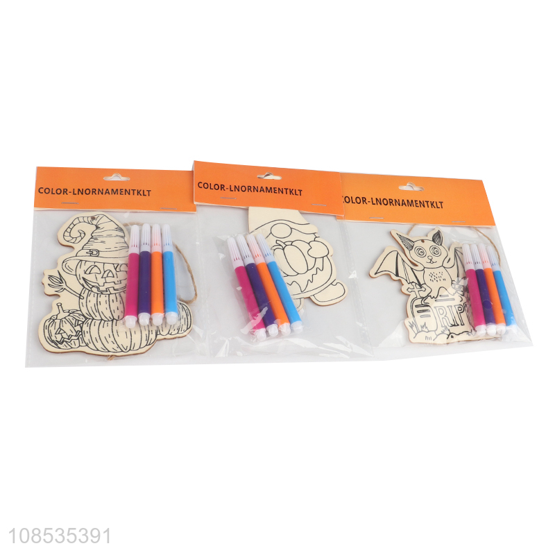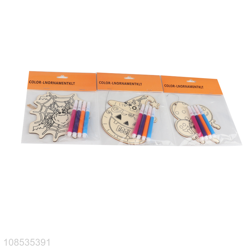 Wholesale DIY painting wooden Halloween ornament unfinished set
