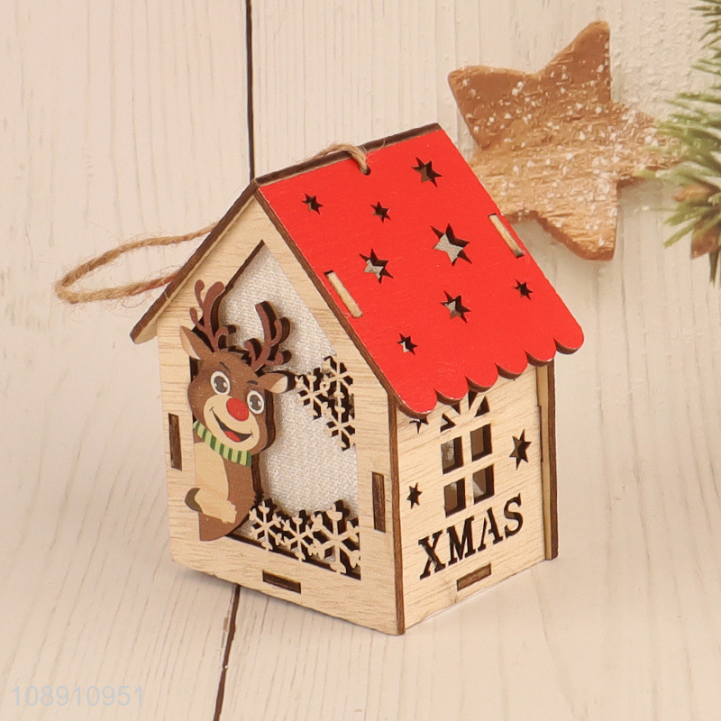 New Product Christmas Led Light Wooden House Christmas Tree Ornaments