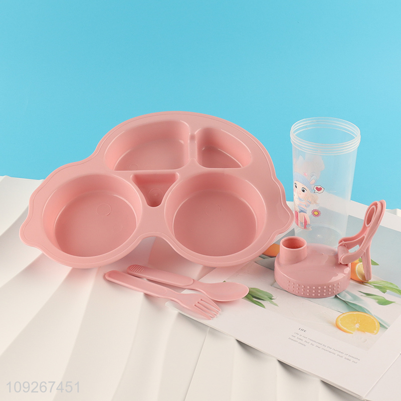 Popular products cartoon plastic baby dinner plate water bottle set for sale