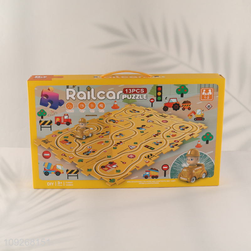 Hot products kids engineering puzzle game electric rail car toys for sale