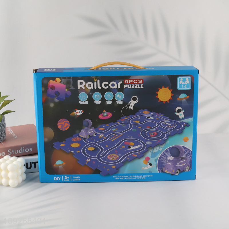 Hot items children diy space puzzle game rail car toys set