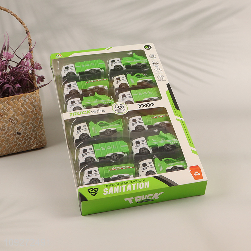 Online wholesale children's toy pull back car set sanitation truck toy set