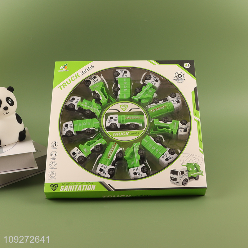 Good price 12pcs sanitation truck children pull back car toy set