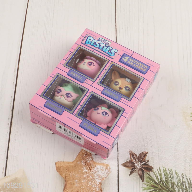 Hot items 4pcs cartoon students stationery scented eraser